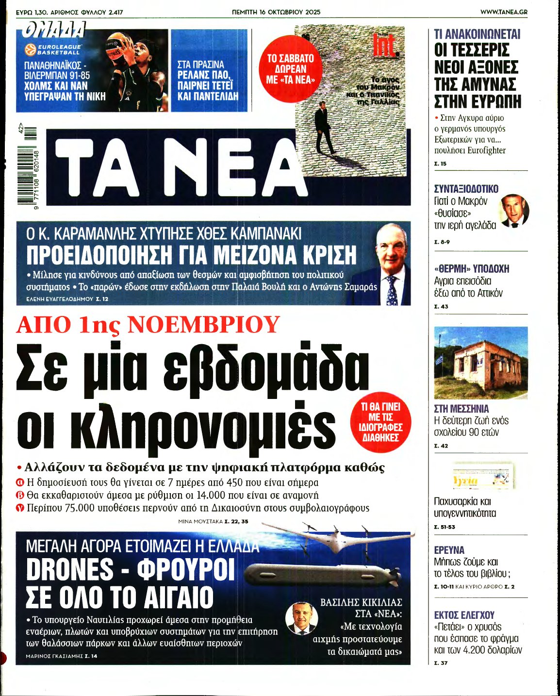 Γεννιέται κρατική επενδυτική τράπεζα; ελληνικός… PHAROS AI τι τρέχει με την ευρωάμυνα; ανοίγει τα χαρτιά της η Nexans «πέρασε» η ΖΙΤΑΚΑΤ τα αστέρια της Metaxa μείωση τιμών: από το ολότελα… το τρίπτυχο της ελληνικής οικονομίας