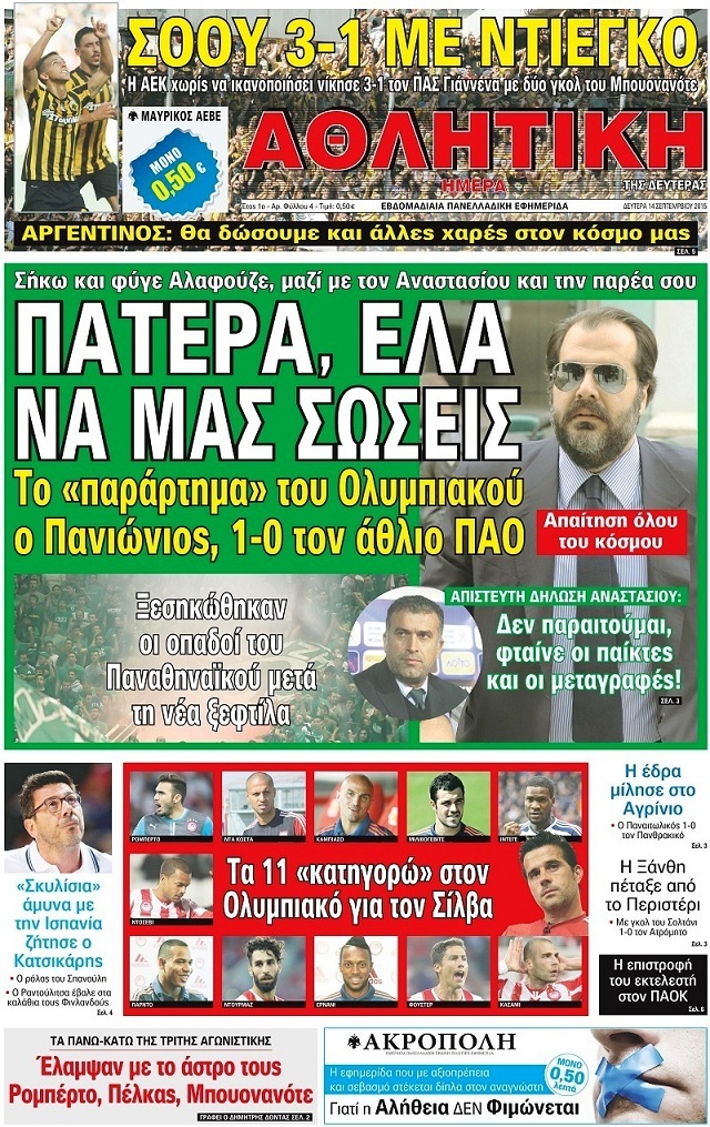 “Ο Πανιώνιος των 125 χρόνων απαιτεί τον σεβασμό όλων. Η “εφημερίδα” “Αθλητική Ημέρα της Δευτέρας” στην προσπάθειά της να βρει πελάτες, αλλά και προστάτες όπως οι “ιερόδουλες σε οίκους ανοχής”, καταφέρεται με δυσμενή και άκρως συκοφαντικά σχόλια σε πρωτοσέλιδό της, κατά της ομάδας μας. Την καλούμε να ανακαλέσει, αλλιώς θα δώσει εξηγήσεις εκεί που πρέπει. Στις αίθουσες των δικαστηρίων”.