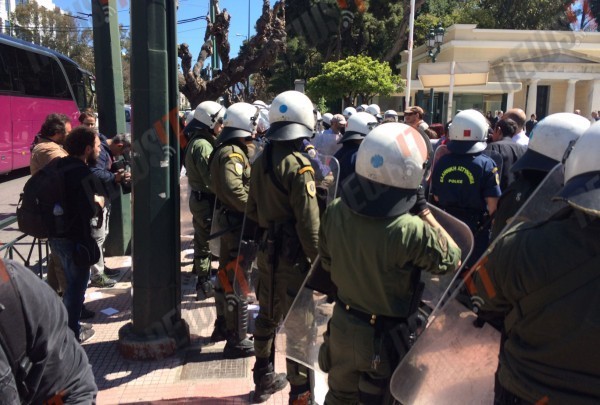 Μάλιστα, τα άτομα αυτά έφτασαν μια ανάσα από την είσοδο υπουργών και βουλευτών! Όπως λένε αυτόπτες μάρτυρες, ευτυχώς που οι φρουροί στην συγκεκριμένη είσοδο είχαν επάνω τους το κλειδί και κλείδωσαν την πόρτα, αλλιώς θα είχαν μπει μέσα στο κτίριο!