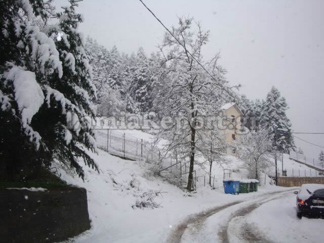 Χειμωνιάτικο είναι το σκηνικό και στην Αράχωβα, με το θερμομετρο να δείχνει τους 0 βαθμούς Κελσίου.