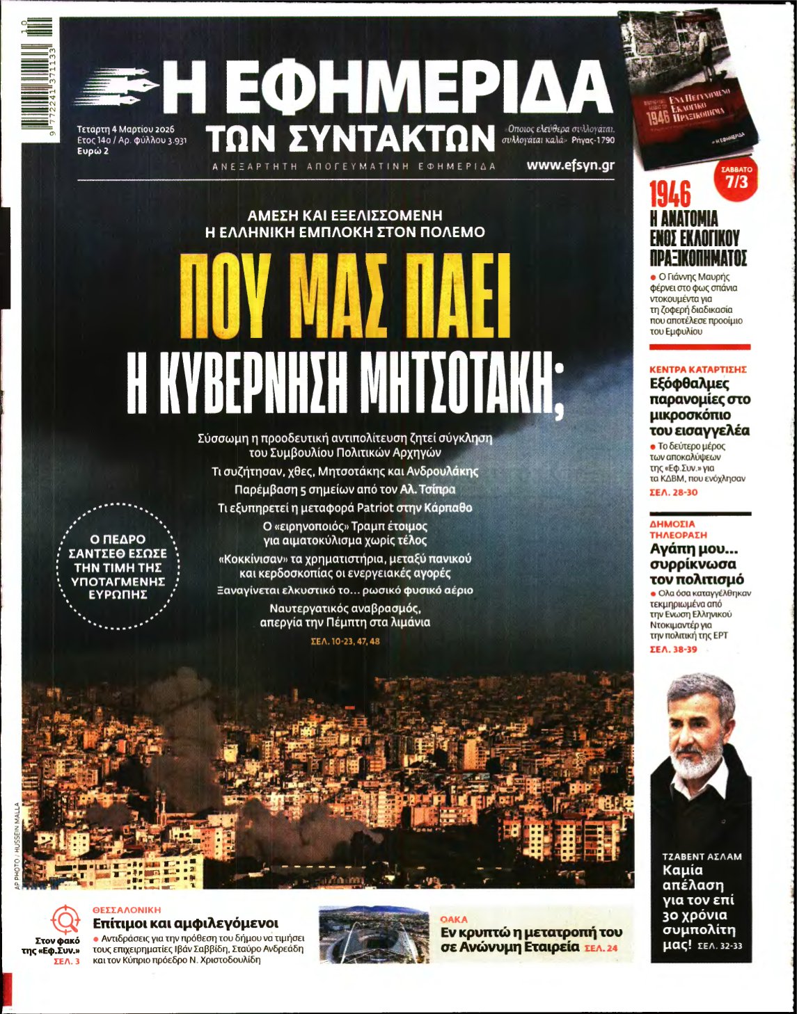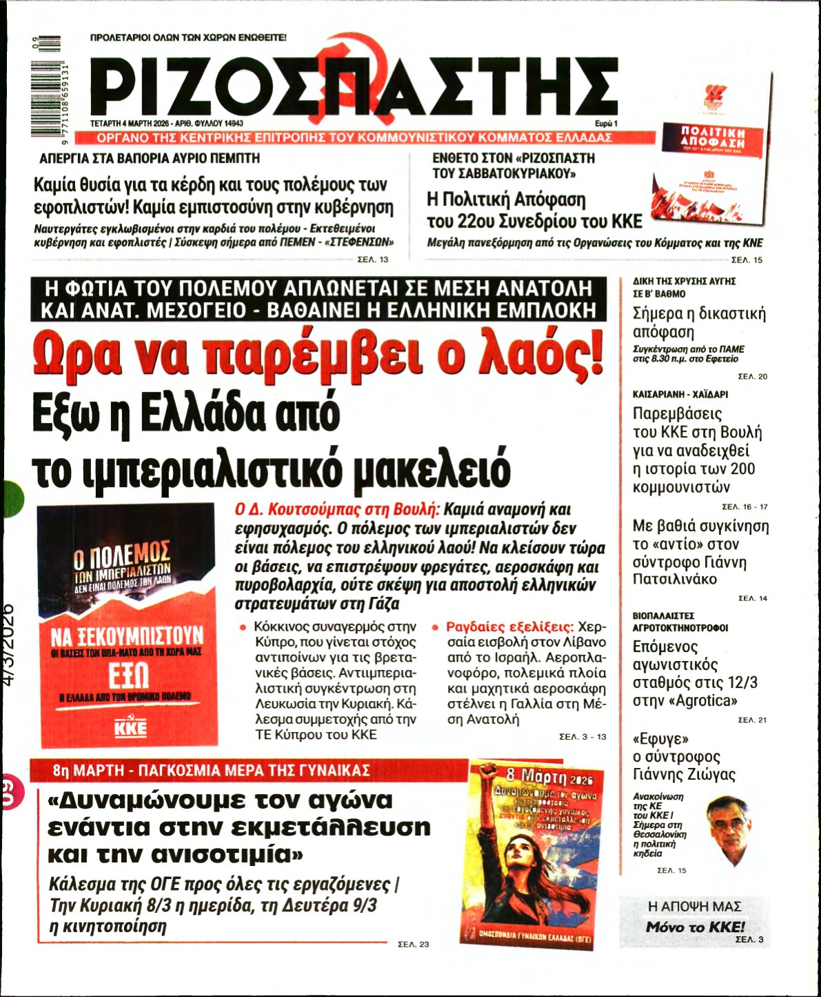 «Δεν είναι στόχος η Ελλάδα» η εκτίμηση της Αθήνας alert για επάρκεια και αυξήσεις στην ενέργεια ο Παπασταύρου πήρε το όπλο του ανοιχτό να παρθούν μέτρα σε ένα ράλι των τιμών απεγκλωβίστηκαν οι 4 βουλευτές που βρέθηκαν στο Βιετνάμ λίγες ώρες πριν την επίθεση ο «Κίμων» στην Κύπρο έδωσε πόντους στη ΝΔ στο ρελαντί η πολιτική αντιπαράθεση λόγω πολέμου