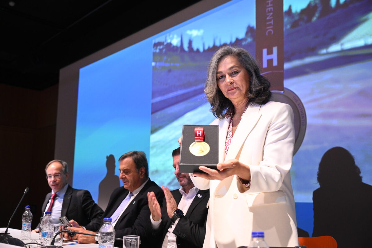 Η ώρα για τον 42ο Αυθεντικό Μαραθώνιο της Αθήνας πλησιάζει και η πρόεδρος του ΣΕΓΑΣ, Σοφία Σακοράφα, με τον περιφερειάρχη Αττικής, Νίκο Χαρδαλιά παρουσίασαν σε σχετική συνέντευξη Τύπου στο Κέντρο Πολιτισμού, Ίδρυμα Σταύρος Νιάρχος, το μετάλλιο που θα δοθεί σε όλους τους συμμετέχοντες και το οποίο και φιλοτέχνησε η σπουδαία κεραμοπλάστρια, Ελένη Βερναδάκη.