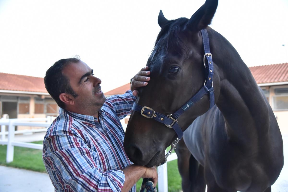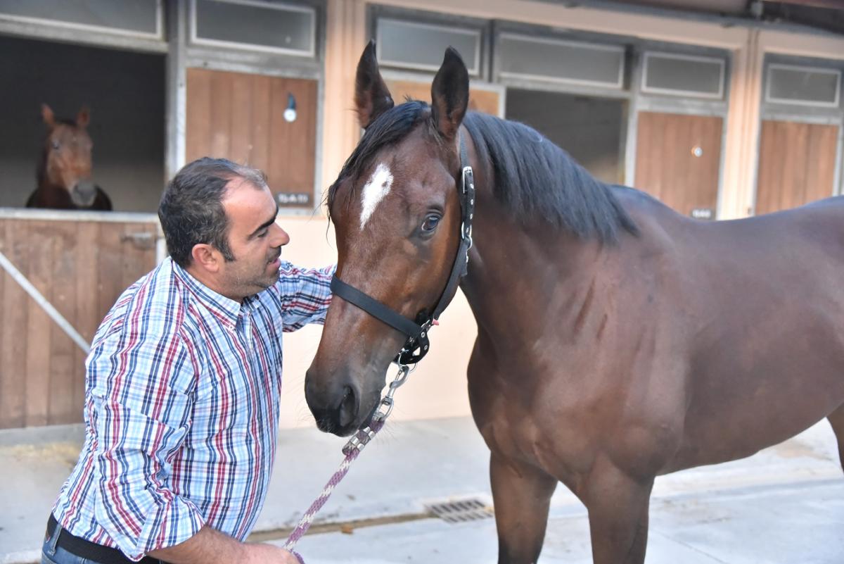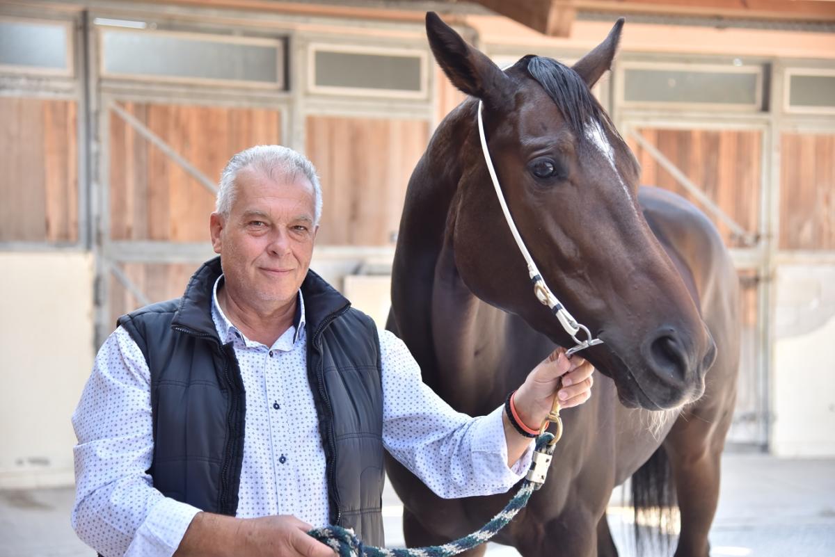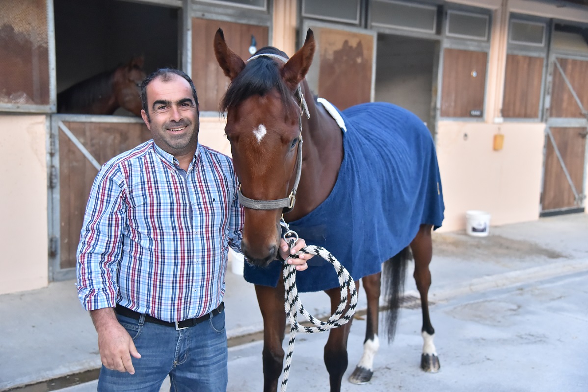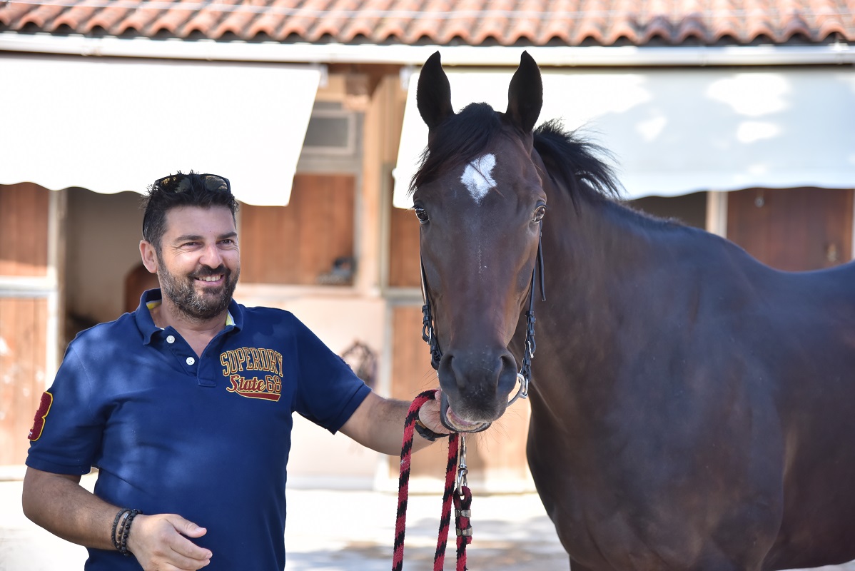 O προπονητής Χρήστος Σταύρου με τον ίππο ΑΛΑΝΑΡΙ
