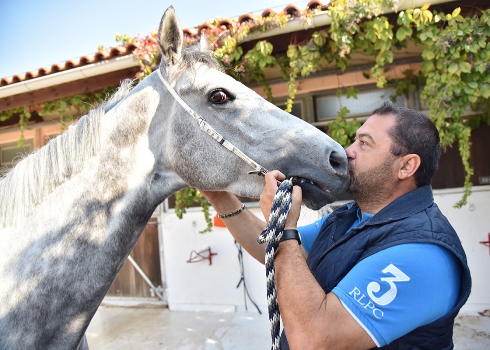 Ο προπονητής Νίκος Καλογερόπουλος με τον ίππο ΡΕΒΑΜΠ
