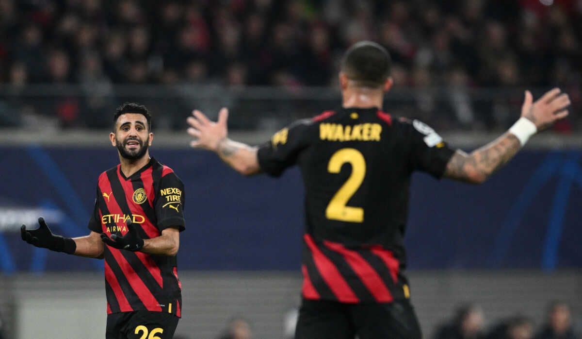 Soccer Football - Champions League - Round of 16 First Leg - RB Leipzig v Manchester City - Red Bull Arena, Leipzig, Germany - February 22, 2023 Manchester City's Riyad Mahrez reacts REUTERS/Annegret Hilse