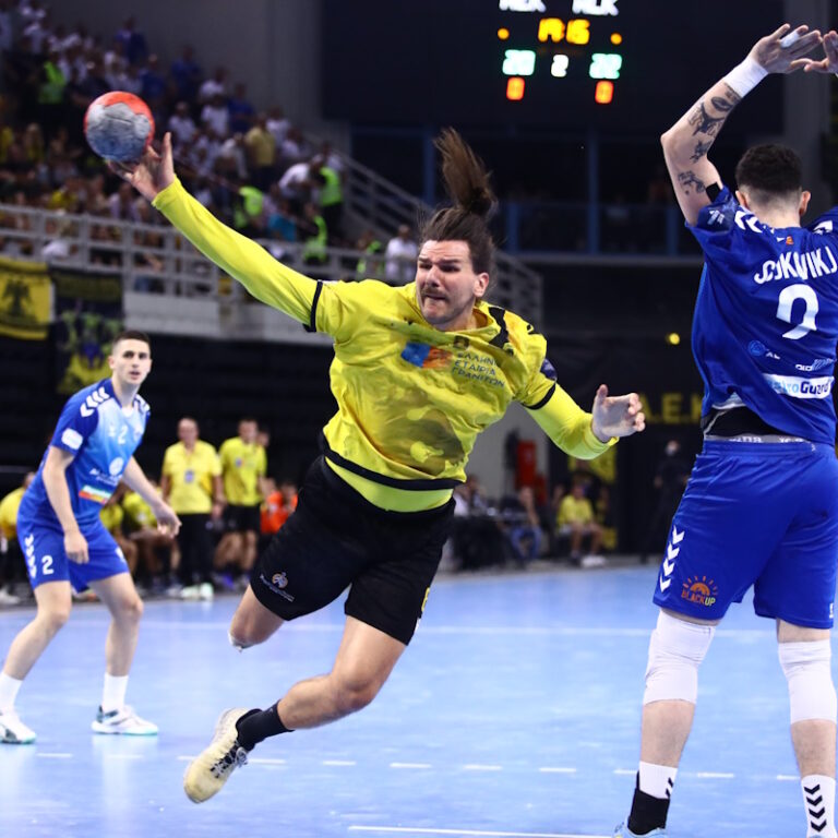 Πολύ δύσκολη κρίνεται πλέον η προσπάθεια της ομάδας χάντμπολ της ΑΕΚ να κατακτήσει για δεύτερη φορά στην ιστορία της το European Cup ανδρών. Στον πρώτο τελικό της διοργάνωσης, που έγινε στην κατάμεστη SUNEL Arena των Ανω Λιοσίων, η Ένωση ηττήθηκε 29-25 (ημίχρονο 16-14) από την Αλκαλόιντ της Βόρειας Μακεδονίας και πλέον αναζητά υπέρβαση και νίκη με +5 στη ρεβάνς, που θα γίνει την επόμενη Κυριακή (25/5) στα Σκόπια.