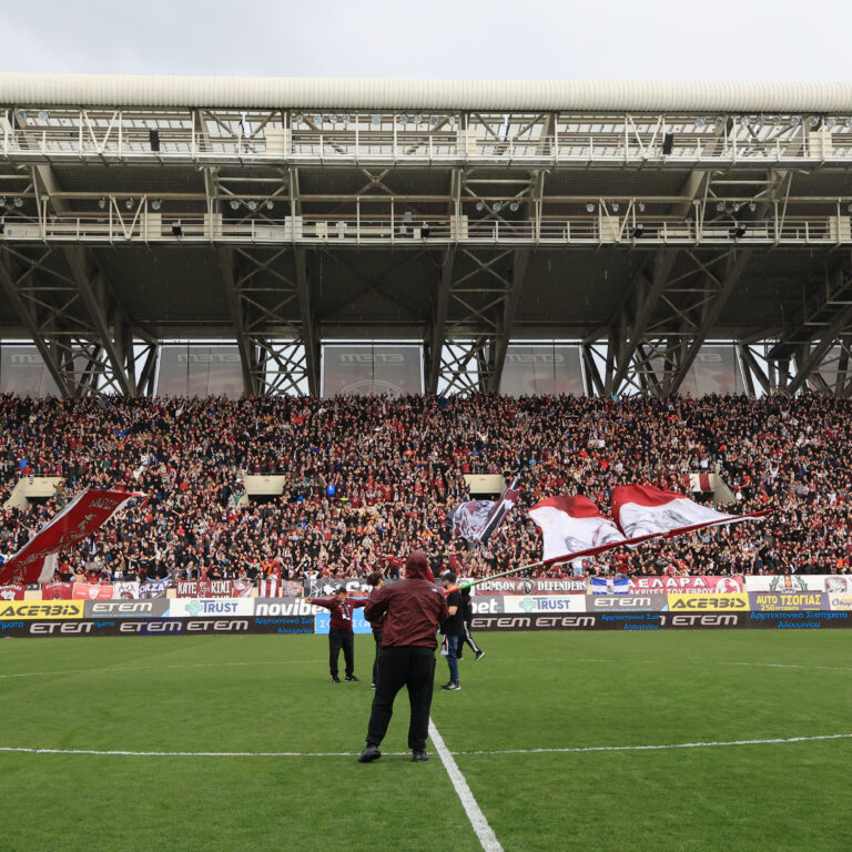 Εντυπωσιακή ατμόσφαιρα στο γήπεδο της ΑΕΛ πριν την έναρξη του αγώνα με τον ΠΑΣ Γιάννινα, με τους φίλους των “βυσσινί” να έχουν φτιάξει ένα φανταστικό κορεό που κάλυπτε όλο το γήπεδο, με αφορμή την άνοδο του συλλόγου στην Super League 1.