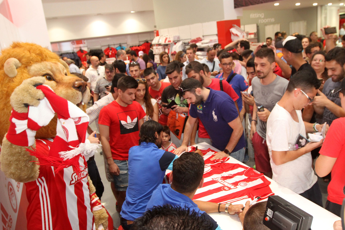 Αμέσως μετά την παρουσίαση, άνοιξε και το red store όπου ο κόσμος έσπευσε να αγοράσει τις πρώτες φανέλες. Φυσικά Φορτούνης, Σιόβας και Τσόρι ήταν εκεί και υπέγραψαν αυτόγραφα στους φίλους των “ερυθρολεύκων”.