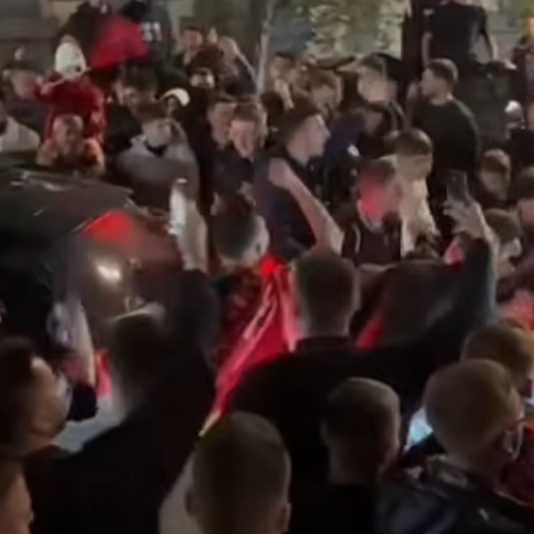 Έξαλλοι πανηγυρισμοί των φιλάθλων της Αλβανίας με πυροβολισμούς στον αέρα και συνθήματα με πολιτικό χαρακτήρα από τους παίκτες