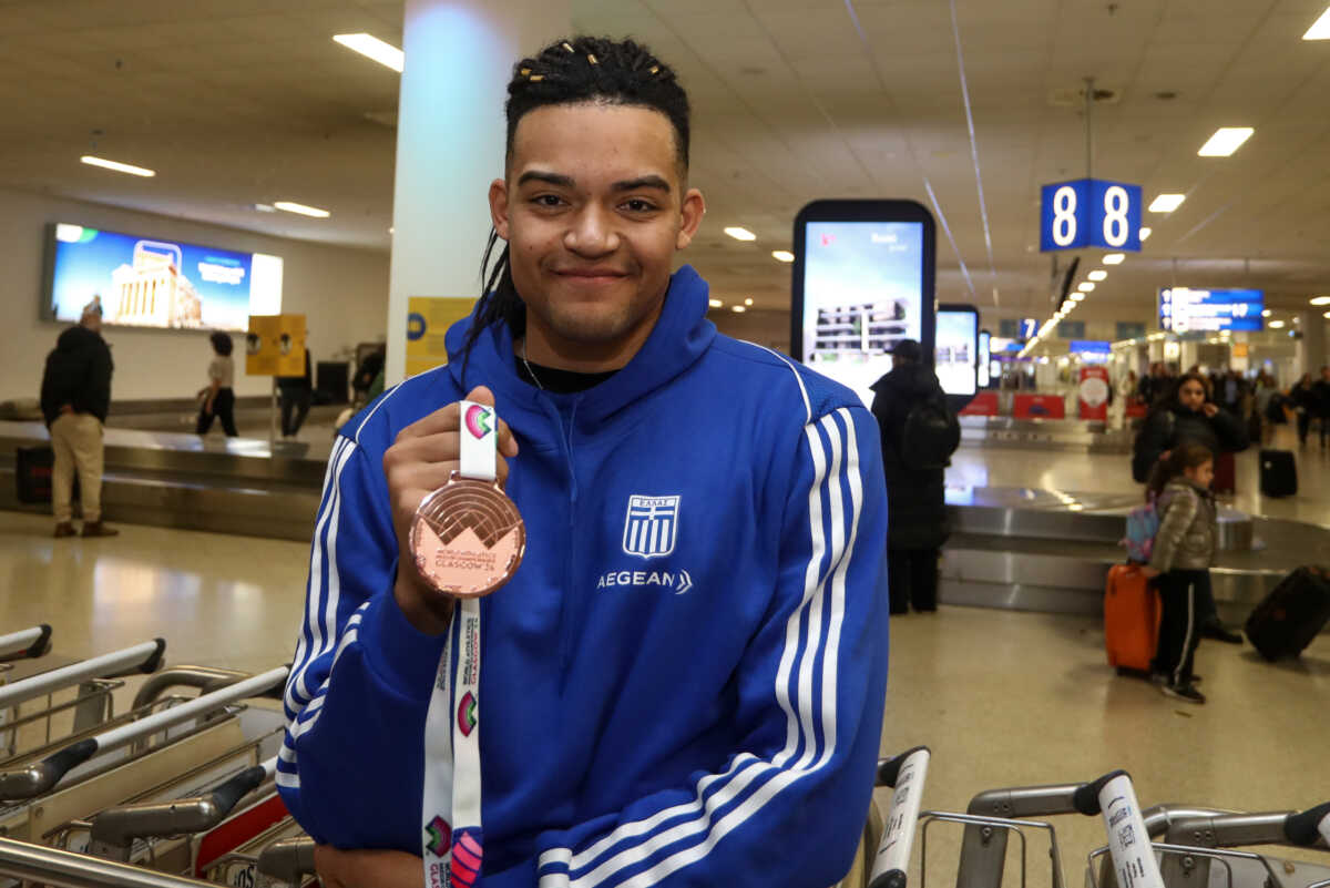 Ο Έλληνας πρωταθλητής δεν μπορούσε με τη σειρά του να κρύψει τη χαρά του, ενώ… μόστραρε το χάλκινο μετάλλιό του που χάρισε στην Ελλάδα, με την υπέροχη εμφάνισή του στη Γλασκώβη.