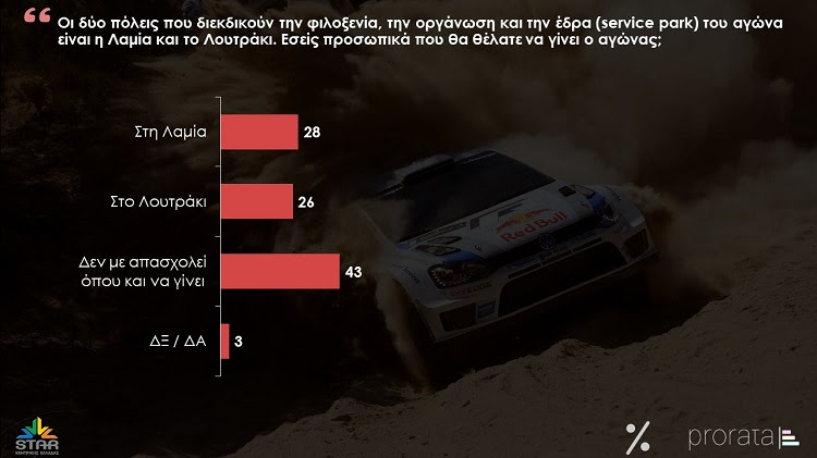 Η Prorata πραγματοποίησε έρευνα κοινής γνώμης, με αφορμή την επιστροφή του Ράλλυ Ακρόπολις στο πρόγραμμα του WRC, για λογαριασμό του Star Κεντρικής Ελλάδας στο διάστημα 6-8 Απριλίου 2021.