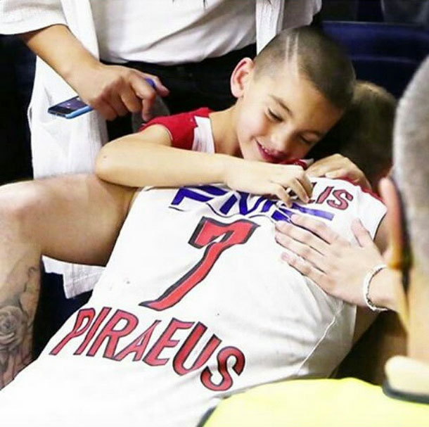 Η εικόνα είναι αν μη τι άλλο συγκινητική: ο Σπανούλης ξεχνά πανηγυρισμούς, τρίποντα, καλάθια, αστοχίες και πέφτει στην πιο ζεστή αγκαλιά, στην αγκαλιά των παιδιών και της γυναίκας του. Ο μεγαλύτερος από τους τρεις γιους του, τυλίγει τα χεράκια του γύρω από τον λαιμό του.