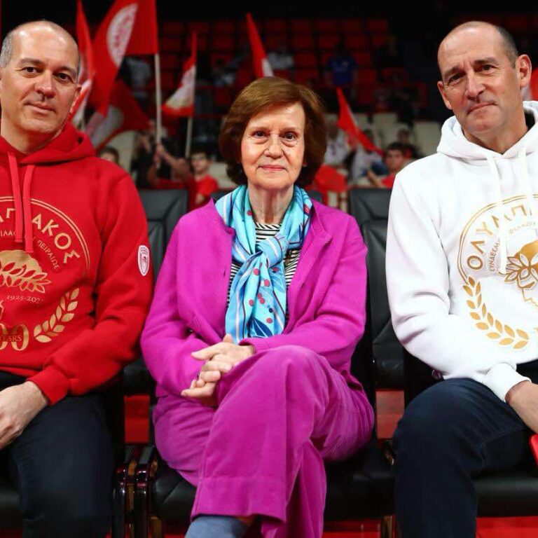 Γιώργος και Παναγιώτης Αγγελόπουλος με τη μητέρα τους στο ΣΕΦ για το Ολυμπιακός – Κολοσσός Ρόδου