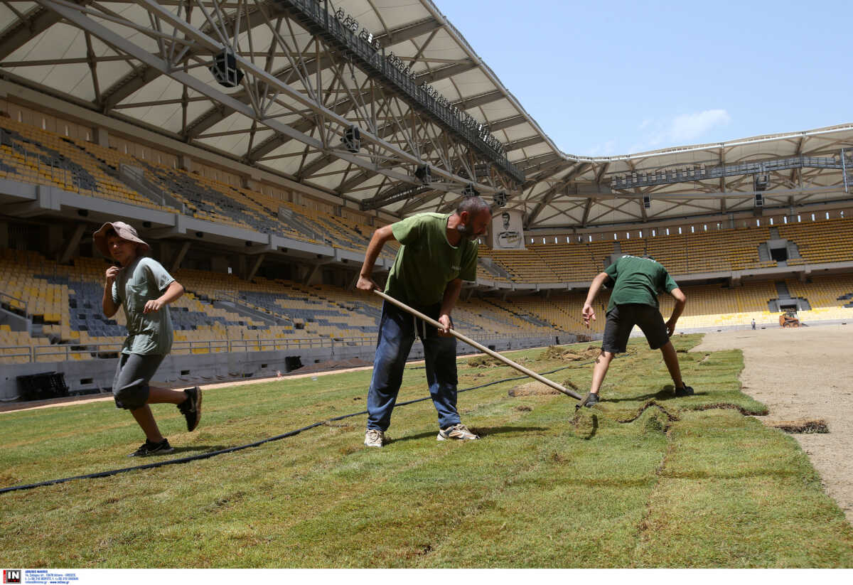 Ήδη έχει αρχίσει έτσι να τοποθετείται και ο χλοοτάπητας στον αγωνιστικό χώρο του γηπέδου, με ένα νέο video να δείχνει ότι έχει καλυφθεί περίπου το μισό κομμάτι του γηπέδου.