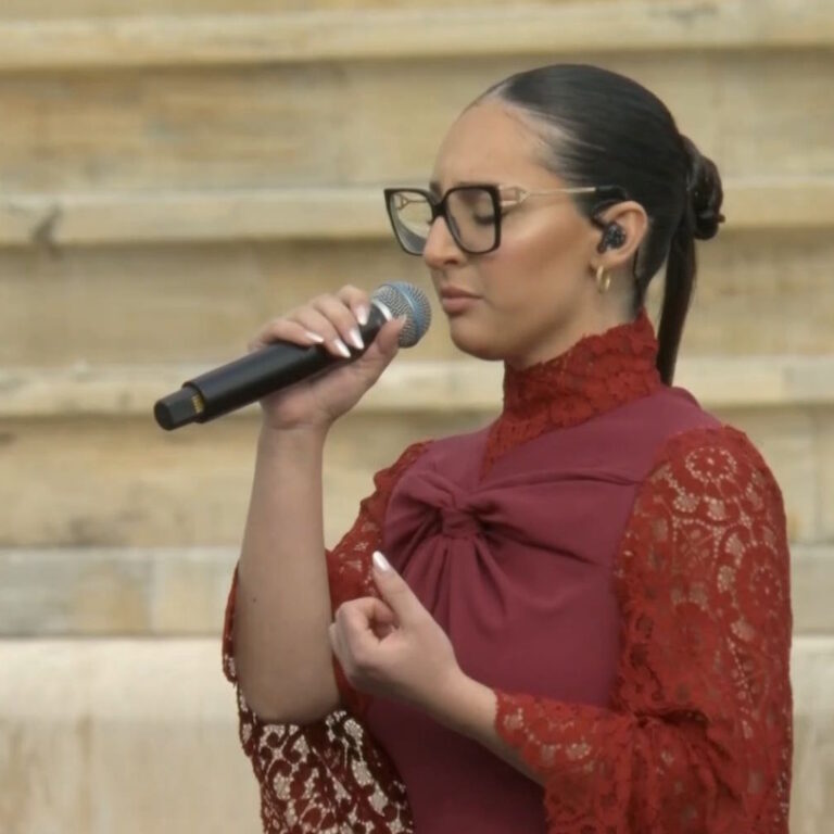 Η Klavdia εμφανίστηκε στο κέντρο του Παναθηναϊκού Σταδίου, φορώντας ένα λιτό κόκκινο φόρεμα και τραγούδησε την “Αστερομάτα”.