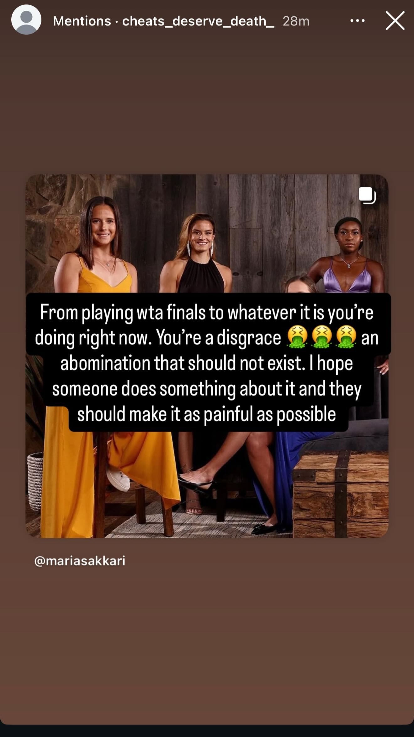 Οι γνωστοί-άγνωστοι έσπευσαν να “κράξουν” την Ελληνίδα τενίστρια στα social media με προσβλητικά και χυδαία μηνύματα, με τη Μαρία Σάκκαρη να αποφασίζει να δημοσιεύσει μερικά από αυτά.