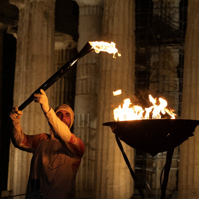 Στο τελείωμα της 8ης μέρας της Ολυμπιακής Λαμπαδηδρομίας, το βράδυ της Τετάρτης (04.12.2025) o χρυσός Ολυμπιονίκης της κωπηλασίας Στέφανος Ντούσκος άναψε το βωμό στην Ακρόπολη.