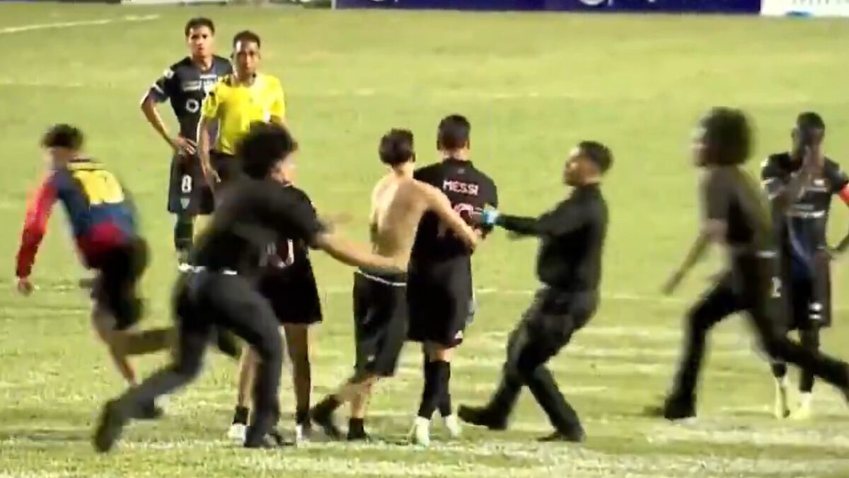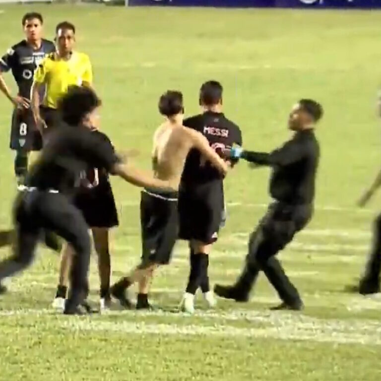 Τη στιγμή που ένας fan του Μέσι κατάφερε να βρεθεί δίπλα του και να βγάλει μια selfie, ένας άλλος -που έτρεχε στον αγωνιστικό χώρο- άρχισε να τον πλησιάζει από πίσω και τελικά τον πήρε αγκαλιά. Τη στιγμή που τον έφτασε, δυο άνθρωποι της ασφάλειας του γηπέδου κατάφεραν να τον πιάσουν. Σαν αποτέλεσμα, έριξαν τον οπαδό αλλά και τον ίδιο τον “αστέρα” της Ίντερ Μαϊάμι στον αγωνιστικό χώρο!