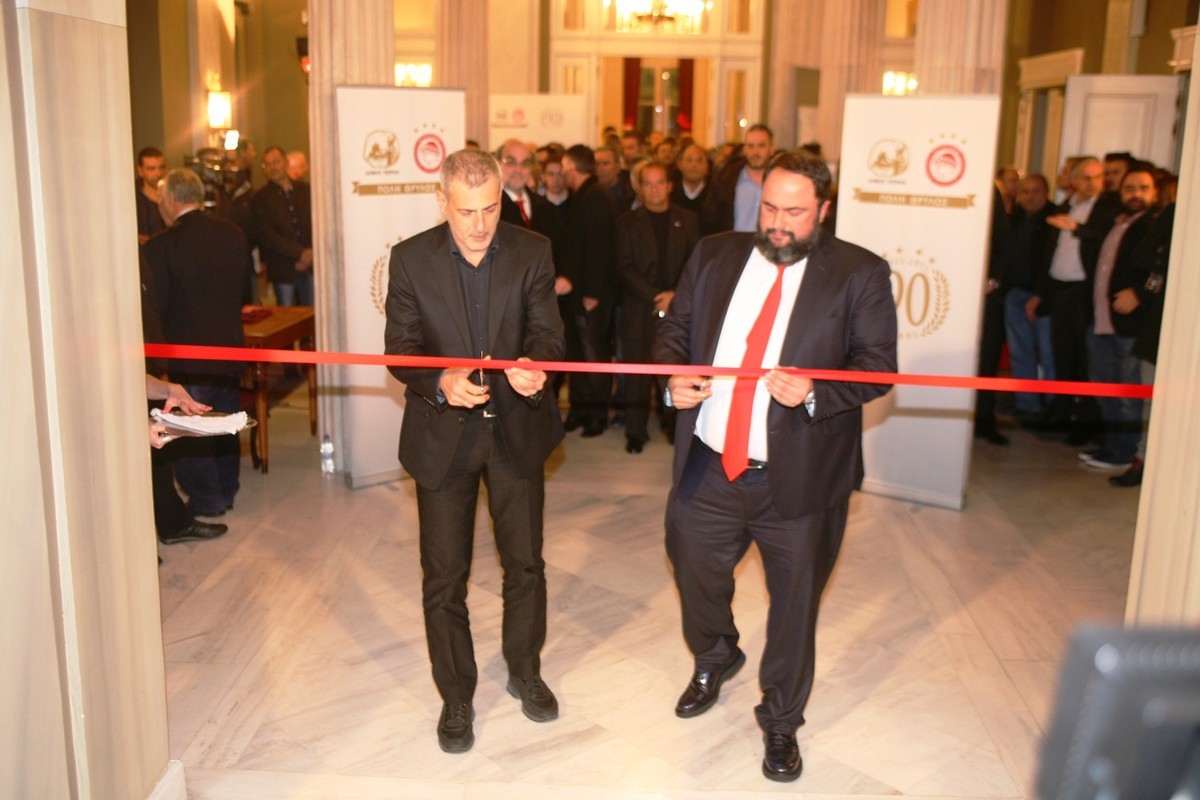 Η εκδήλωση για τα 90 χρόνια του Ολυμπιακού έκλεισε με τα εγκαίνια της εικαστικής έκθεσης στο Φουαγιέ του Δημοτικού Θεάτρου και στις προθήκες των καταστημάτων γύρω από το θέατρο, η οποία περιλαμβάνει: