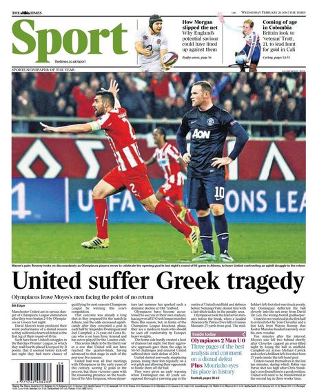 Αξιολύπητη, τραγική κι άλλα τέτοια... "κοσμητικά" επίθετα χρησιμοποιούν τα βρετανικά ΜΜΕ για τη Μάντσεστερ Γιουνάιτεντ, μετά την ήττα από τον Ολυμπιακό στο πρώτο παιχνίδι της φάσης των 16 στο Champions League.