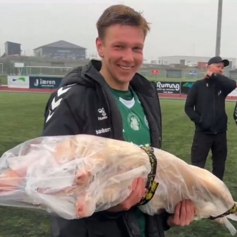 Η Μπρίνε φαίνεται ότι προσπαθεί να γίνει viral τον τελευταίο καιρό, αφού μετά τα αυγά στον τερματοφύλακάς της, ήρθε η ώρα να δώσει και ένα γουρούνι 23 κιλών στον MVP της στον αγώνα με τη Βάρχογκ στο Κύπελλο Νορβηγίας.