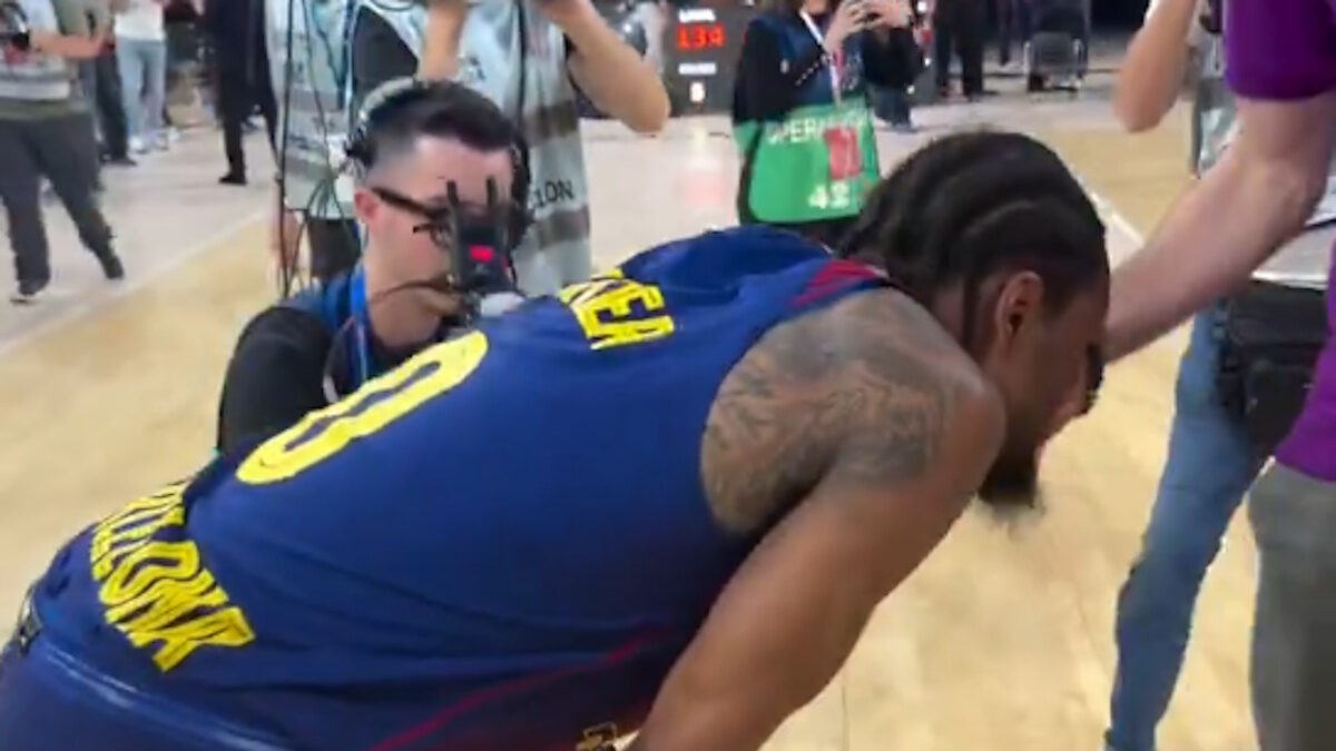«Ήταν τριπλή παράταση;» αναρωτήθηκε ο Αμερικανός σούπερ σταρ απευθυνόμενος στο δημοσιογράφο, καθώς η κούραση τον είχε καταβάλλει. «Έπρεπε να παλέψουμε και να βγάλουμε τα plays μας» συνέχισε.