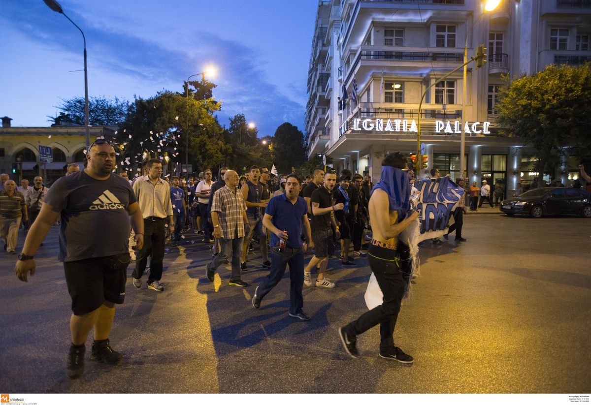 Η πορεία διέσχισε τις οδούς Εγνατία, Αγίας Σοφίας, Τσιμισκή και Μητροπόλεως και κατέληξε εκεί όπου βρίσκεται το ξενοδοχείο όπου διαμένει ο Σπύρος Παπαθανασάκης. Εκεί παρέμειναν για περίπου 20 λεπτά, φώναξαν συνθήματα κατά του ιδιοκτήτη της «κυανόλευκης» ΠΑΕ κι απαίτησαν την άμεση απεμπλοκή του από τα διοικητικά δρώμενα της ομάδας.