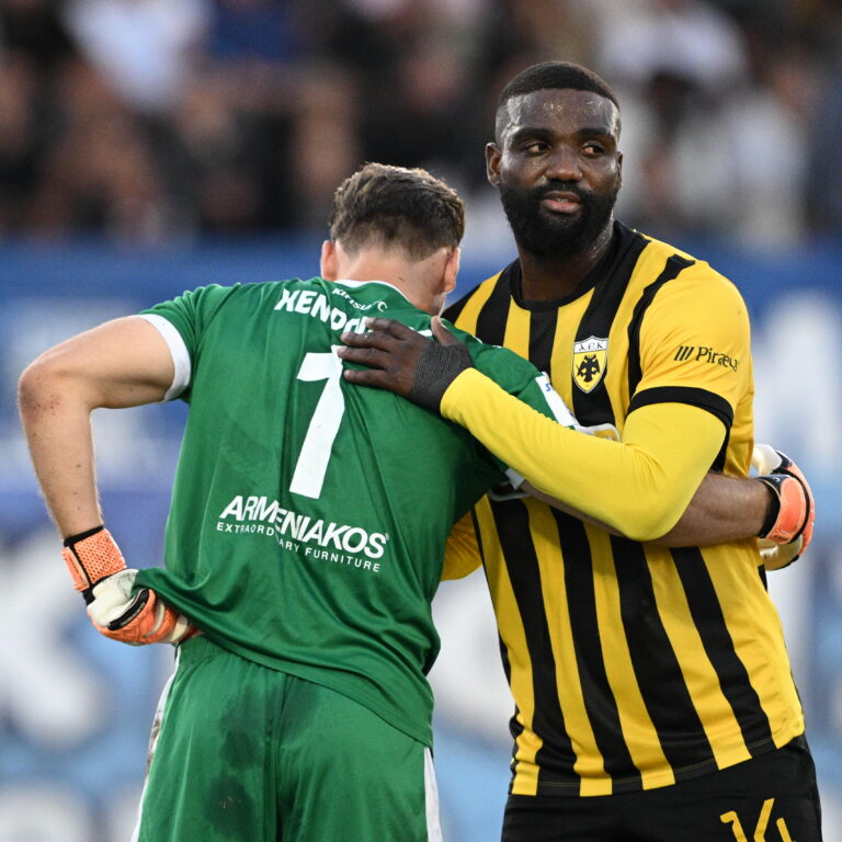 Ο Πιερό πήγε και έδωσε το χέρι του στον Ξενόπουλο,λέγοντας με αυτό τον τρόπο μια “συγγνώμη”, με τον πορτιέρε των γηπεδούχων να έχει στα πλευρά του, τα σημάδια που του άφησαν οι τάπες των παπουτσιών του παίκτη της ΑΕΚ.