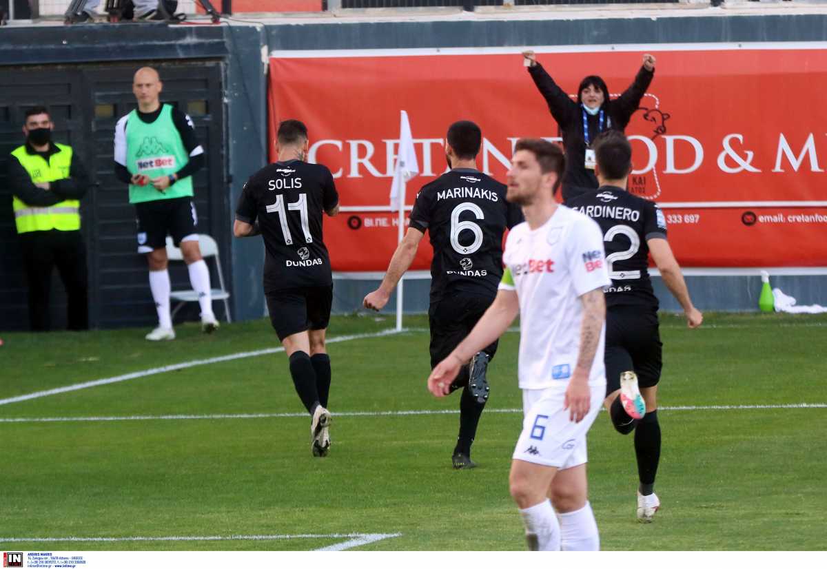 Κόντρα στη ροή του αγώνα, οι Γιαννιώτες άνοιξαν το σκορ με τον Παμλίδη στο τέλος του ημιχρόνου, αλλά στο δεύτερο μέρος, το “μαγικό” γκολ του Σαρδινέρο και ένα πέναλτι του Σολίς που έφερε και ξέσπασμα δακρύων, χάρισε το σπουδαίο τρίποντο στους Κρητικούς.