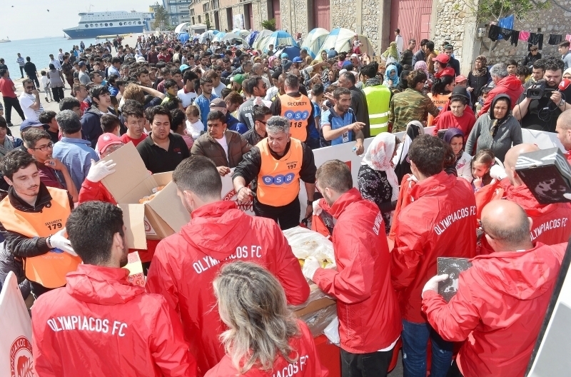 Για άλλη μια μέρα ο Ολυμπιακός βρέθηκε δίπλα στους χιλιάδες πρόσφυγες που βρίσκονται στο λιμάνι του Πειραιά.