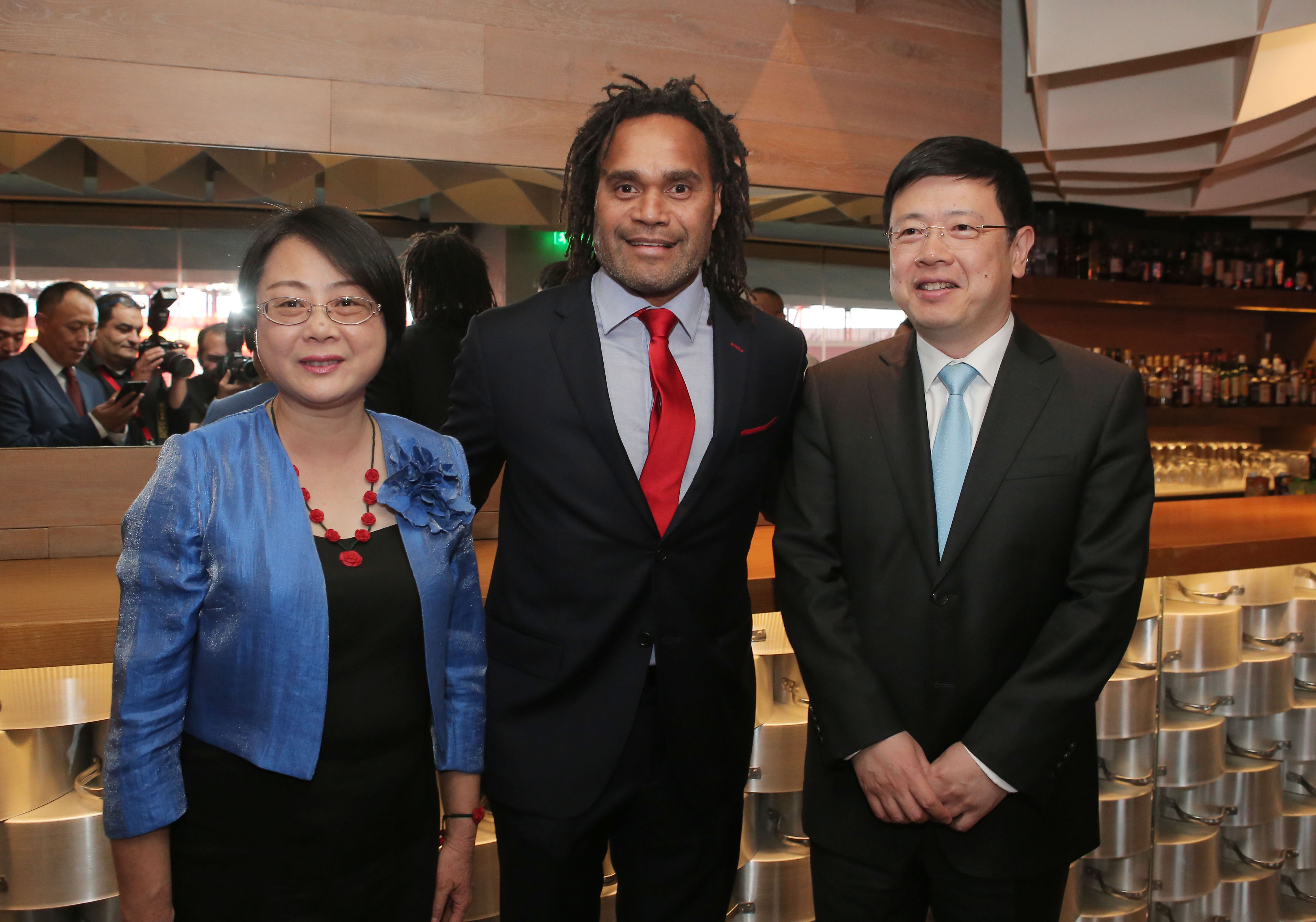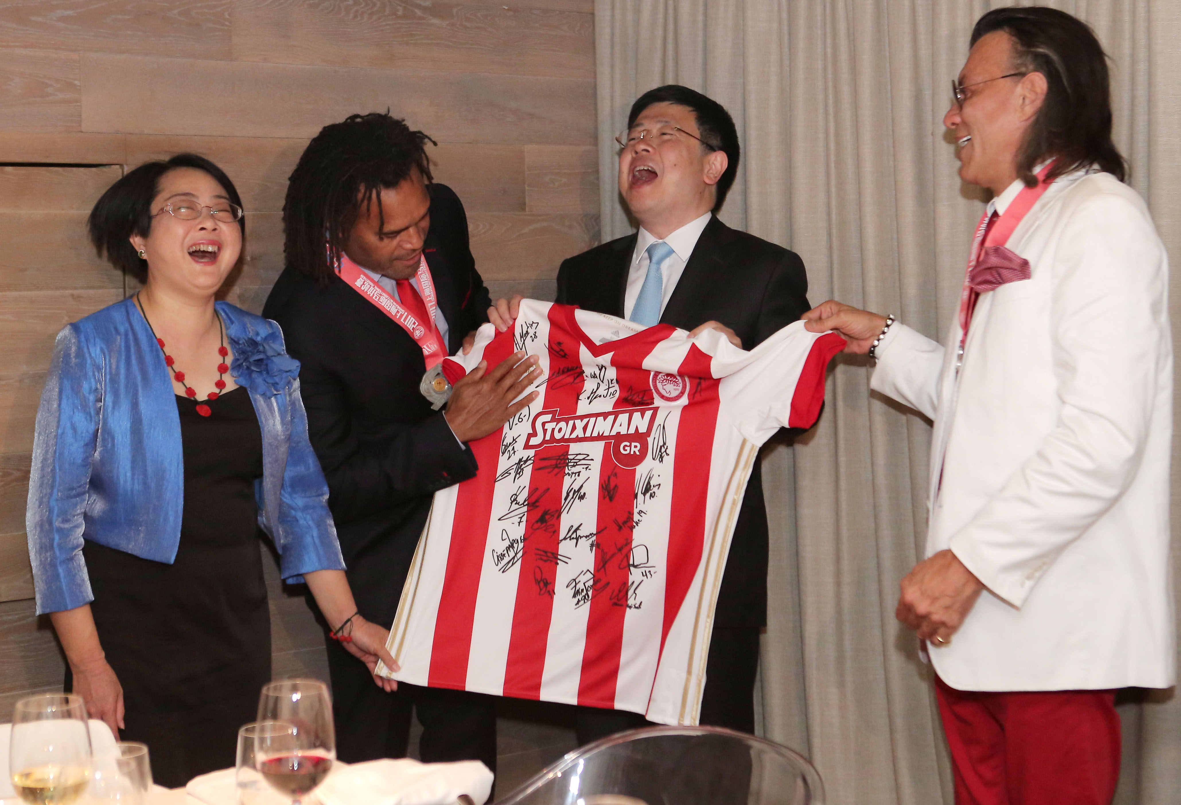 Ο ηγέτης του Ολυμπιακού, κ. Βαγγέλης Μαρινάκης, είχε υπογραμμίσει τότε, μεταξύ άλλων: «Σας καλωσορίζω στο σπίτι μας. Στην Ελλάδα. Στον Πειραιά. Στο λιμάνι της καρδιάς μας. Στο Στάδιο Γεώργιος Καραϊσκάκης. Στο σπίτι της οικογένειας του Ολυμπιακού. Σε ένα χώρο που φιλοξένησε τους πρώτους Ολυμπιακούς Αγώνες του 1896 ως ποδηλατοδρόμιο και τους Ολυμπιακούς Αγώνες της Αθήνας το 2004 στο ποδόσφαιρο. Φυσικά, τα τελευταία χρόνια το ανακατασκευάσαμε για να δημιουργήσουμε ένα υπερσύγχρονο στάδιο ποδοσφαίρου. Κίνα και Ελλάδα! Τα έθνη που ανέβασαν την επιστήμη, τη φιλοσοφία και την τέχνη σε πρωτόγνωρα επίπεδα ήδη αρκετές χιλιάδες χρόνια πριν! Τα δύο έθνη που έχουν εξαπλώσει τα φώτα του πολιτισμού και της κουλτούρας στον κόσμο. Δύο λαοί, που για χιλιάδες χρόνια ξεχωρίζουν σαν έμποροι και θαλασσοπόροι, από την αρχαιότητα μέχρι τις μέρες μας.
