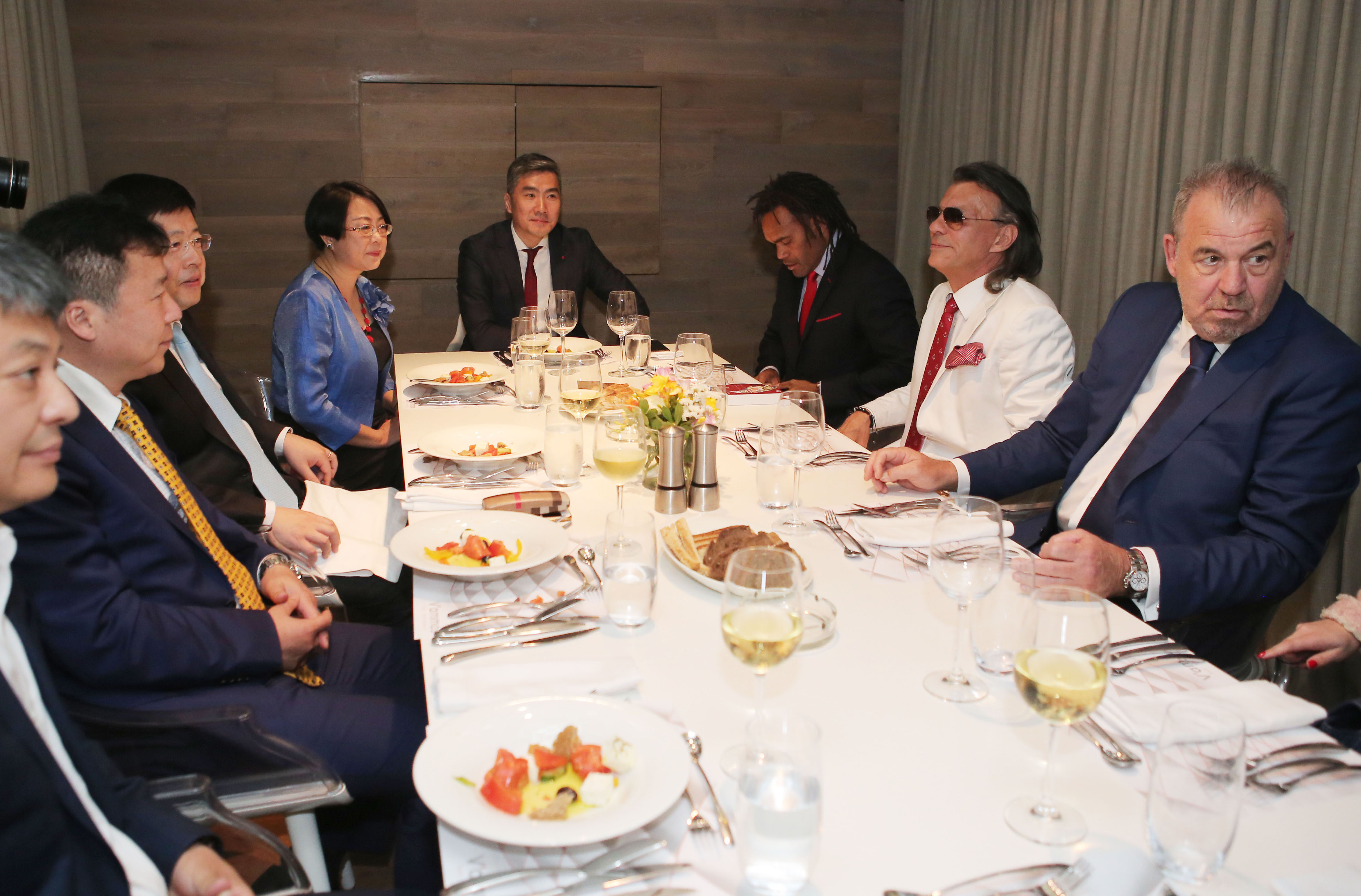 Με φόντο το γήπεδο Καραϊσκάκη, οι επισκέπτες από την Κίνα, άνθρωποι του αθλητισμού, απόλαυσαν το φαγητό τους, καθώς και την φημισμένη ελληνική φιλοξενία, εν γένει. Προσέφεραν σε όλους τους καλεσμένους δώρα του Ολυμπιακού. Ο Θρύλος είχε φιλοξενήσει και πέρυσι την επιτροπή Μαραθωνίου, σε μία σπουδαία εκδήλωση, στο γήπεδο Καραϊσκάκη, για τη φιλία μεταξύ Δήμων από τη χώρα μας και την Κίνα.