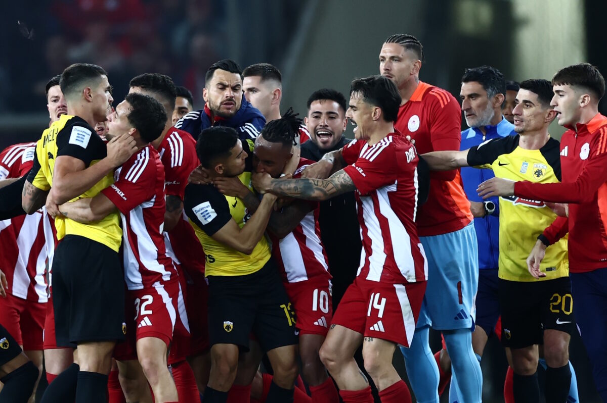 Σε αυτήν κατέβηκε μέχρι και ο ισχυρός άνδρας της ΠΑΕ Ολυμπιακός, Βαγγέλης Μαρινάκης για να εκτονωθεί η ένταση. Από την πλευρά τους, οι άνθρωποι των Πειραιωτών ανέφεραν χαρακτηριστικά ότι “χωρίς κανένα λόγο, όπως και την προηγούμενη φορά με τον Αλμειδα που και πάλι είχε προκαλέσει ένταση -για να δικαιολογήσει η ΑΕΚ τη νέα της ήττα- παίκτες και άνθρωποι της δημιούργησαν αναίτια ένταση κι ενώ μόλις ο Ολυμπιακός είχε στεφθεί πρωταθλητής”.