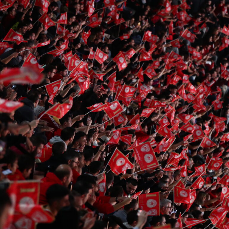 Το κλίμα ήταν εορταστικό και η ατμόσφαιρα που δημιουργήθηκε εντυπωσιακή, αφού το γήπεδο ήταν κατάμεστο με ερυθρόλευκους οπαδούς, που ανέμιζαν τα σημαιάκια τους.