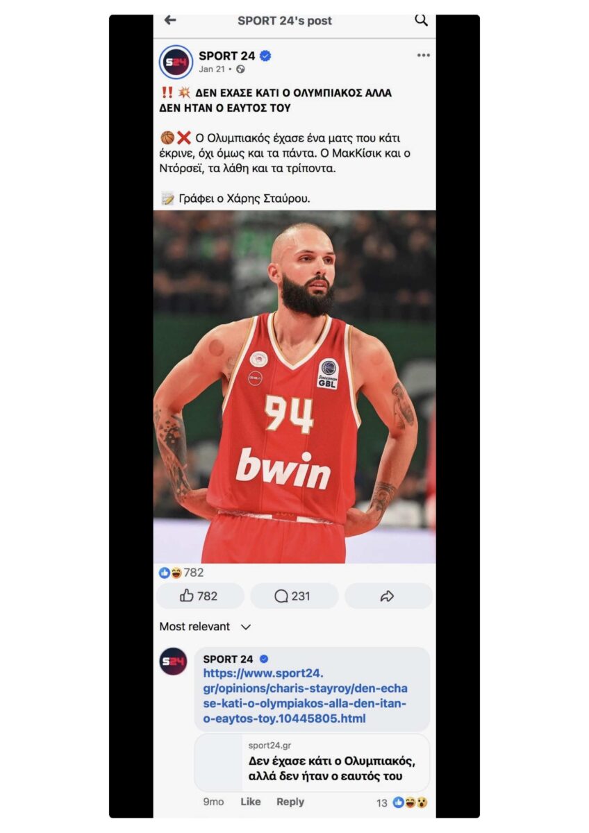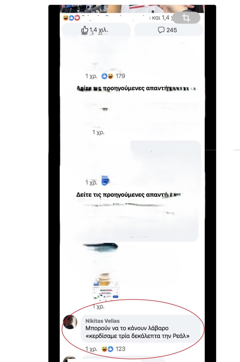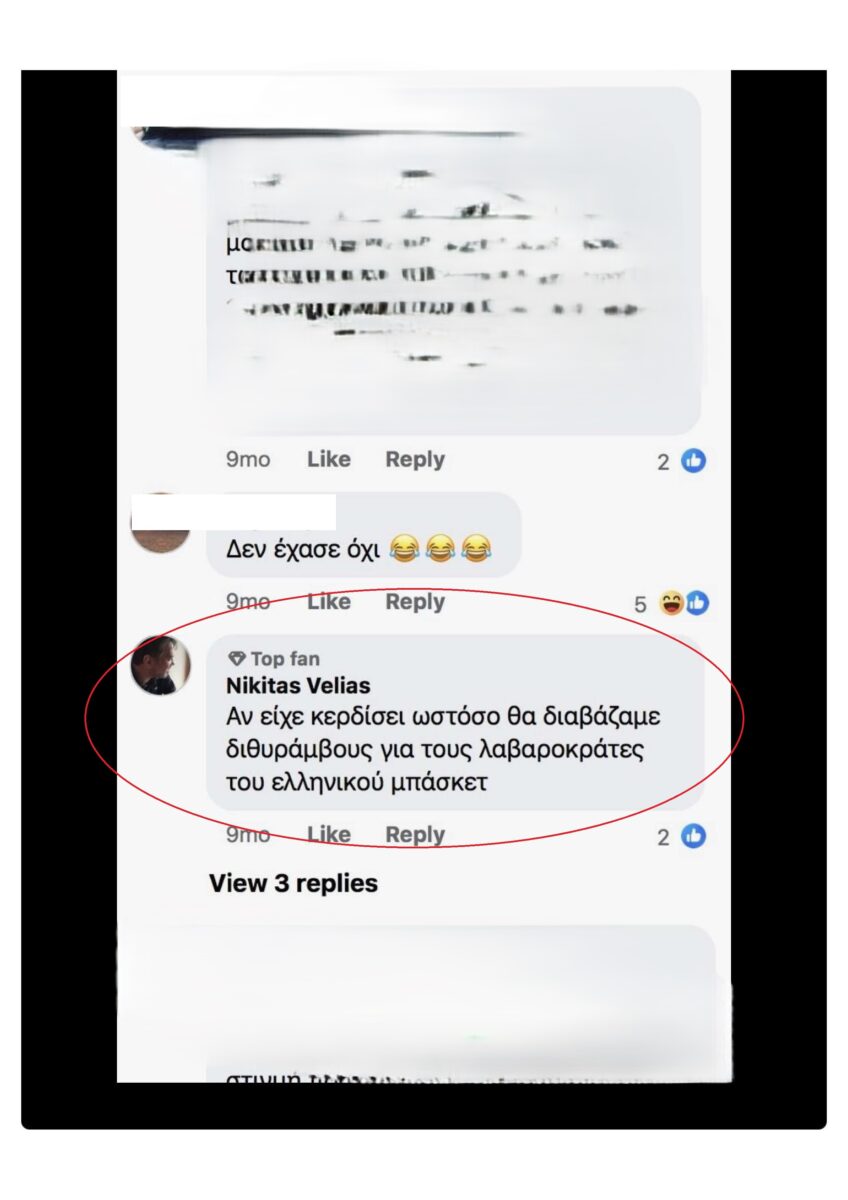 Ο Ολυμπιακός πήρε επίσημα θέση για το θέμα και δημοσίευσε σχόλια που φέρεται να έκανε ο Νικήτας Βελίας στα social media, υπερασπιζόμενος μεταξύ άλλων, τον Παναθηναϊκό και τον Δημήτρη Γιαννακόπουλο.