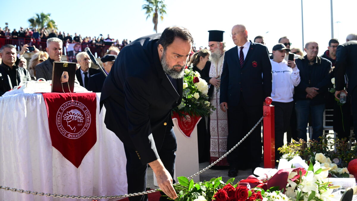 Στο “Γ. Καραϊσκάκης” βρέθηκε σύσσωμη η ΠΑΕ Ολυμπιακός, με τον Βαγγέλη Μαρινάκη και τους παίκτες της ομάδας να αφήνουν ένα λουλούδι στο μνημείο.