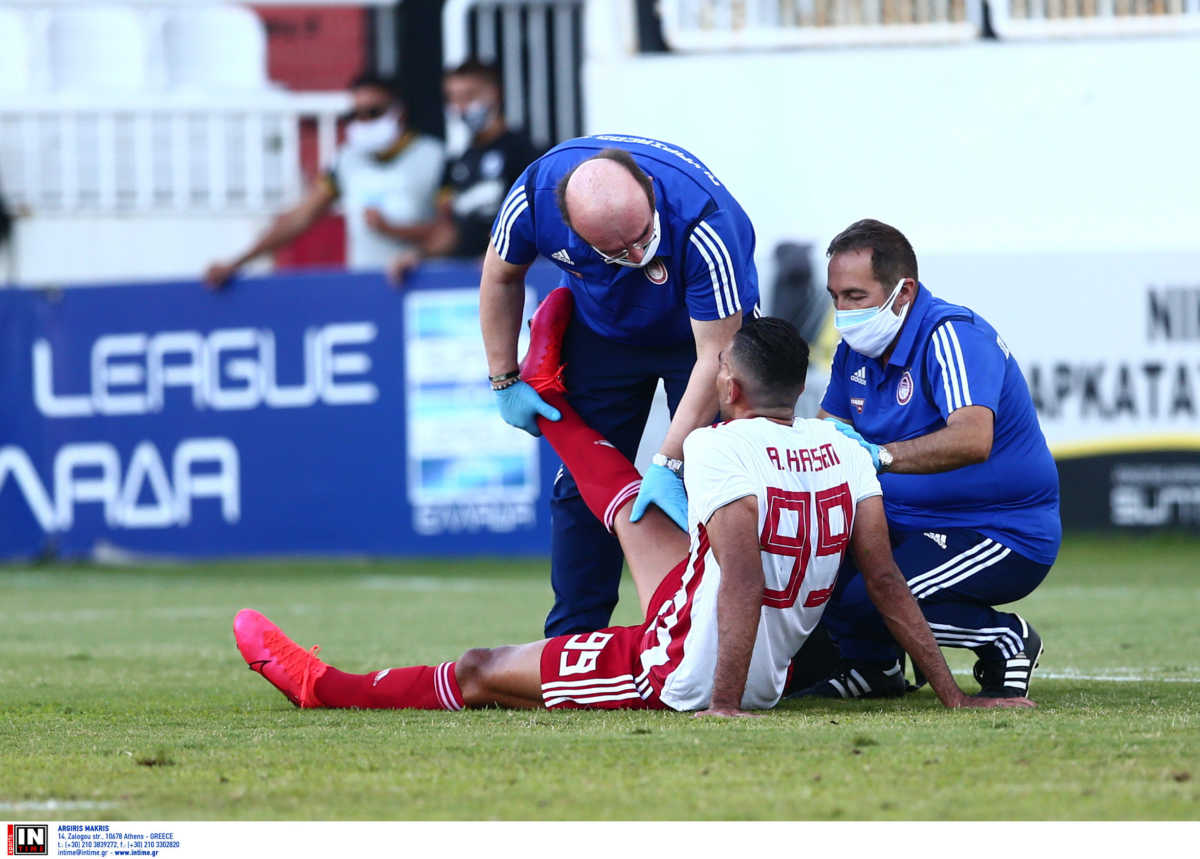 Ο Αχμέντ Χασάν αποχώρησε τραυματίας από το παιχνίδι του Ολυμπιακού με τον ΟΦΗ για τα play off της Superleague και φαίνεται ότι έχει υποστεί τράβηγμα.