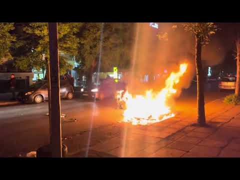 Τεταμένη η ατμόσφαιρα έξω από το Κλεάνθης Βικελίδης μετά την ήττα του Άρη από τον Παναθηναϊκό και το χαμένο Κύπελλο Ελλάδος. Οπαδοί του Άρη, έβαλαν φωτιά έκαψαν δύο κάδους στην οδό Παπαναστασίου.