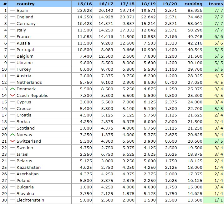 Στην περίπτωση όμως που η Ελλάδα παραμείνει στη 16η θέση στη βαθμολογία της UEFA, ή υποχωρήσει κι άλλο, θα χάσει ένα ευρωπαϊκό εισιτήριο από τη σεζόν 2021/22 (θα εκπροσωπηθεί από μία ομάδα στα προκριματικά του Champions League, καμία σε αυτά του Europa League 1 και τρεις σε αυτά του Europa League 2).