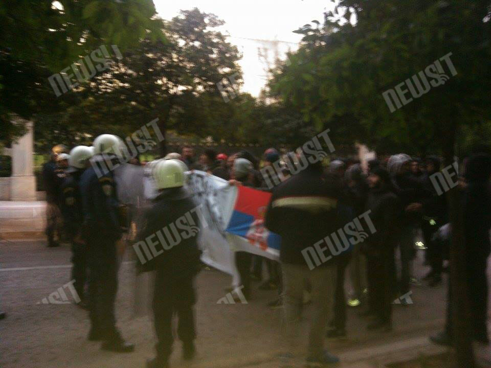 Στην τουρκική πρεσβεία κατέφτασαν περίπου 30 από τους Σέρβους οπαδούς, ωστόσο στην θέα των αστυνομικών δυνάμεων διαλύθηκαν ησύχως.