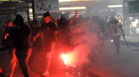 Τα έκτροπα ξεκίνησαν από νωρίς με τους οπαδούς των δύο ομάδων να συγκρούονται μακριά από το Ολίμπικο, παρά την ισχυρή αστυνομική δύναμη.