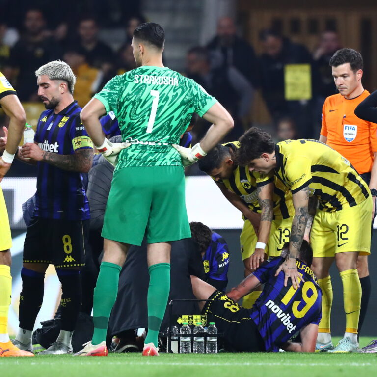 Ο σοβαρός τραυματισμός του Αλφαρέλα επισκίασε την αναμέτρηση του Άρη με την ΑΕΚ στη Νέα Φιλαδέλφεια.