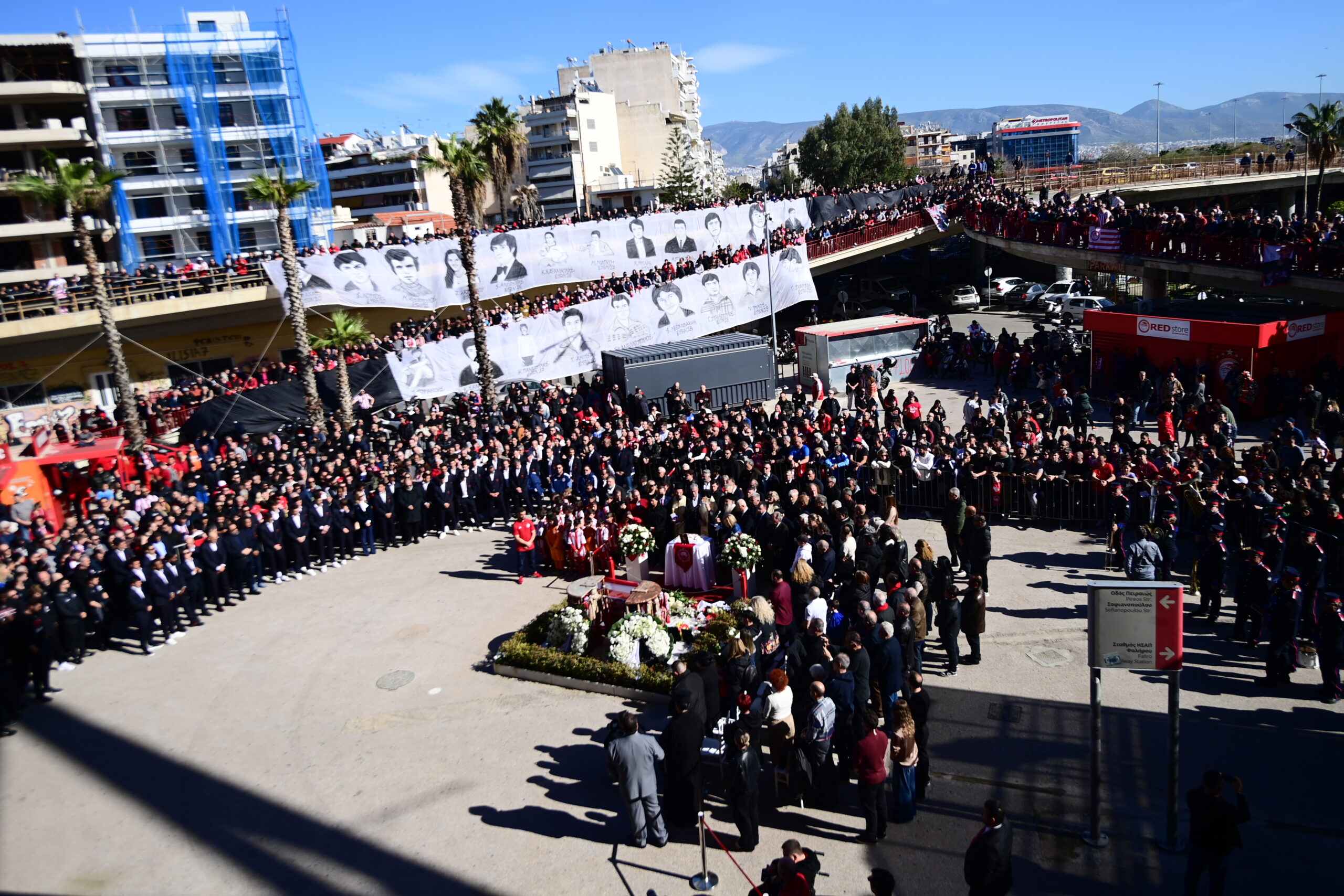 Πλήθος κόσμου δήλωσε το παρών για να τιμήσει τη μνήμη των 21 θυμάτων της τραγωδίας, όπως συμβαίνει κάθε χρόνο. Στο «Γ. Καραϊσκάκης» βρέθηκαν και όλα τα υπόλοιπα τμήματα του συλλόγου.