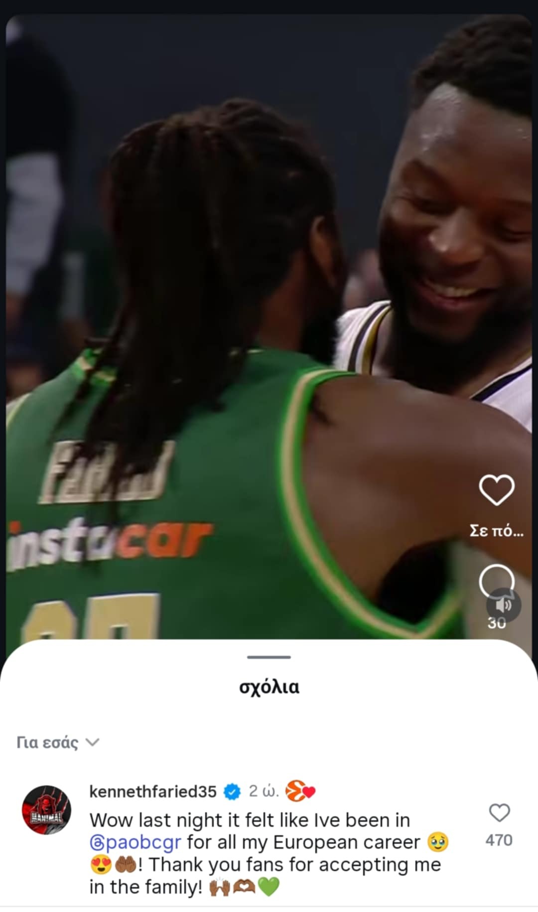 Ο ίδιος ζει τον δικό του μπασκετικό παράδεισο στον Παναθηναϊκό και απολαμβάνει κάθε στιγμή με την πράσινη φανέλα.