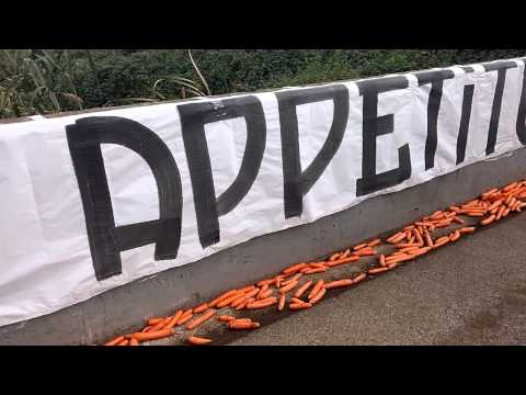 Περίπου 50 οπαδοί των “τζιαλορόσι” βρέθηκαν τη Δευτέρα το πρωί έξω από το προπονητικό κέντρο της ομάδας, στην Τριγκόρια, άφησαν στην είσοδο καφάσια με… 50 κιλά καρότα (!) και ξεδίπλωσαν ένα πανό που έγραφε “καλή όρεξη κουνέλια”.