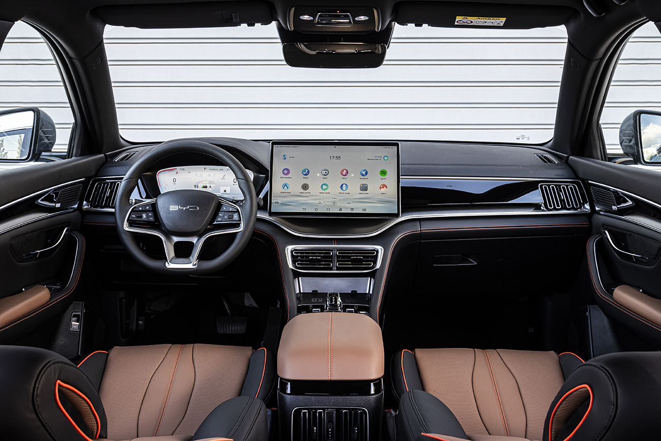 Επιπλέον, το κινεζικό premium SUV προσφέρει έξυπνη συνδεσιμότητα, ενημέρωση και ψυχαγωγία, ακόμα και από απόσταση μέσω της εφαρμογής BYD για smartphone. Παρέχοντας μια εξαιρετική και εξατομικευμένη συνδεδεμένη εμπειρία, το Intelligent Cockpit System προσφέρει, επίσης, σύνδεση 4G, ενσωματωμένο Spotify και πλοήγηση HERE, ενσωμάτωση smartphone μέσω Android Auto ή Apple CarPlay και έξυπνο φωνητικό έλεγχο που μπορεί να ενεργοποιηθεί με τη φωνητική εντολή «Hi BYD». Το σύστημα χρησιμοποιεί ενημερώσεις Over-The-Air (OTA) για να παραμένει πλήρως επικαιροποιημένο.