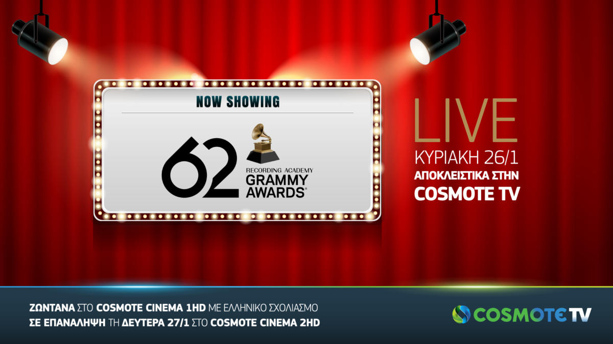 Την Κυριακή 26 Ιανουαρίου θα πραγματοποιηθεί η 62η τελετή απονομής των βραβείων Grammy που θα μεταδοθεί ζωντανά και αποκλειστικά στην COSMOTE TV.