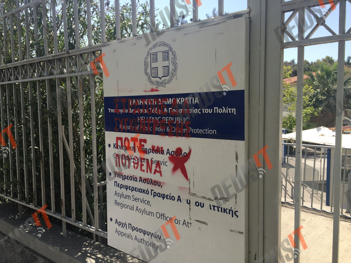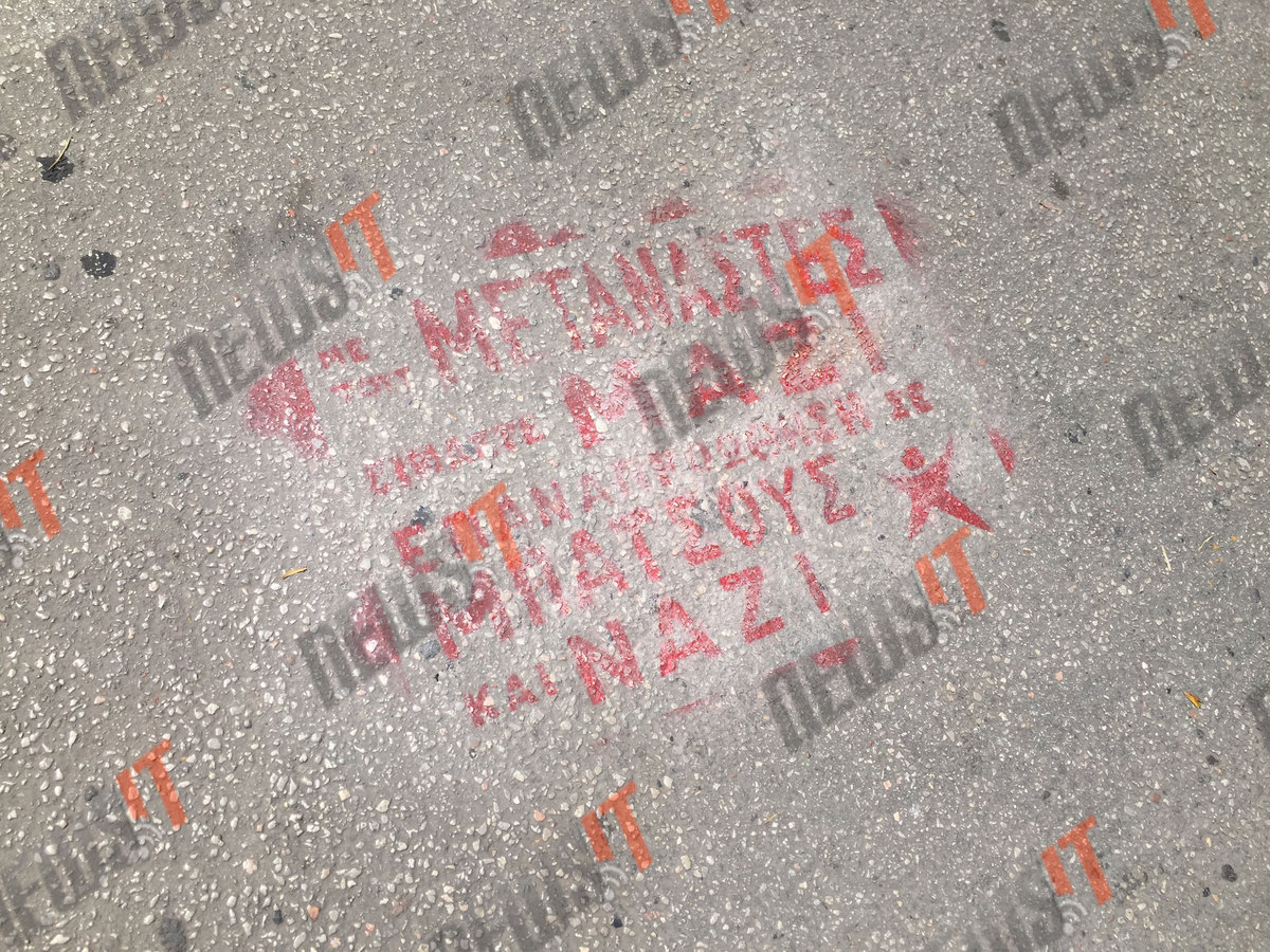 Τους τοίχους του υπουργείου Δημόσιας Τάξης επέλεξαν τα μέλη αριστερής φοιτητικής παράταξης για να γράψουν τα συνθήματά τους και να διαμαρτυρηθούν για το θέμα του μεταναστευτικού.