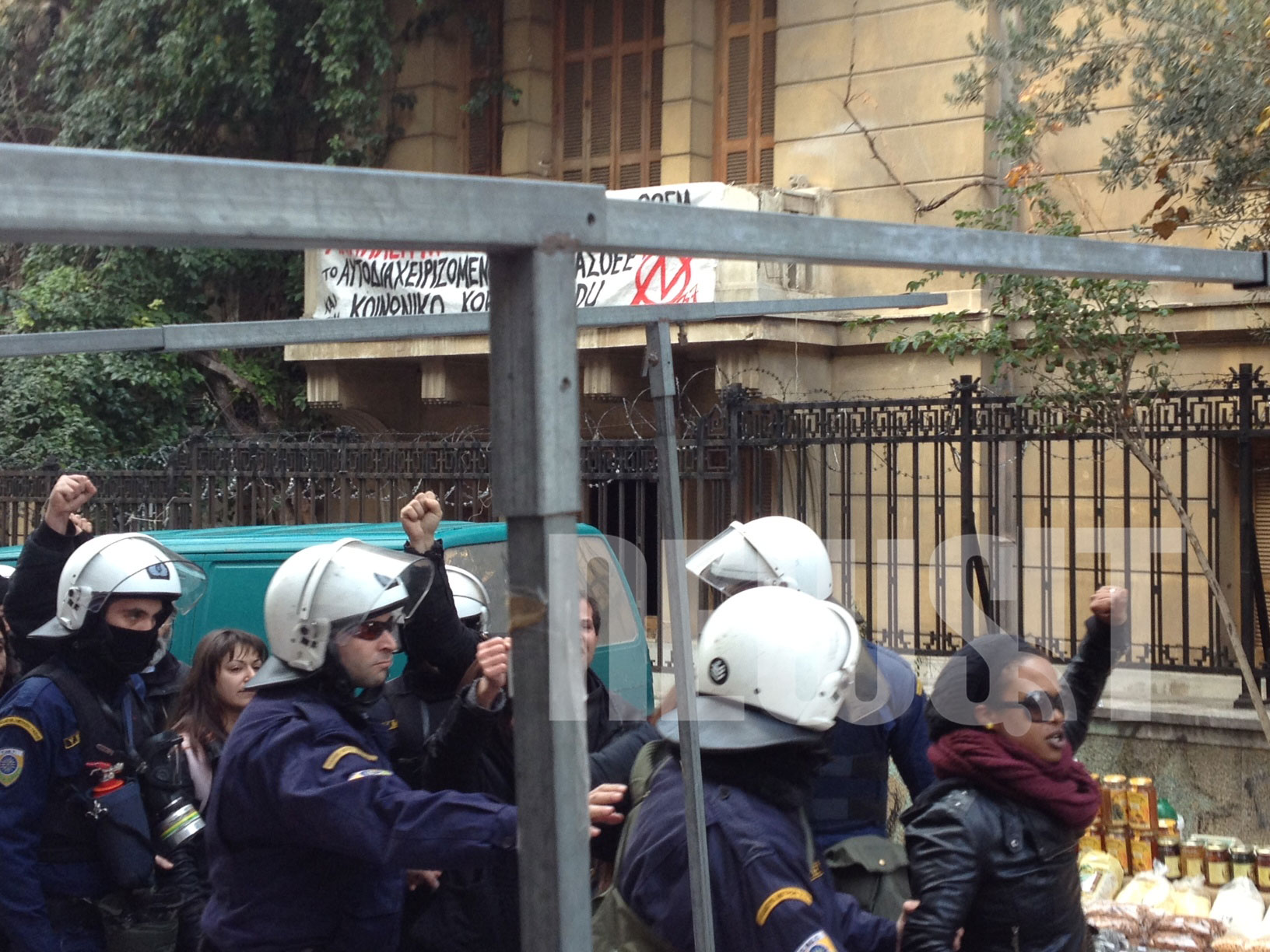 - Λίγα λεπτά αργότερα άγνωστος αριθμός έμπαινε και πάλι στην κατάληψη αναρτώντας νεο πανό
