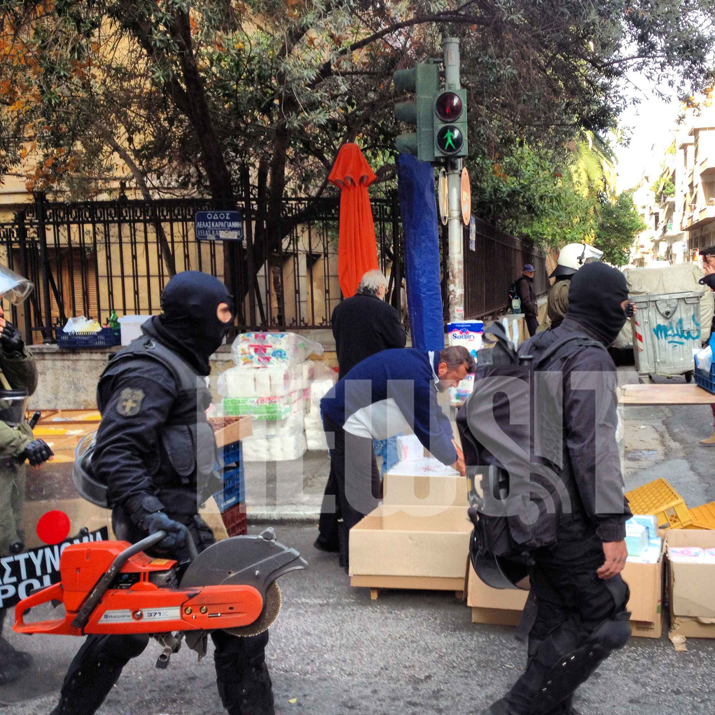 Όλα έγιναν μέσα σε λίγα λεπτά. Όπως δηλαδή έγιναν και το μεσημέρι, όταν αστυνομικοί και άνδρες των ΕΚΑΜ, έφταναν στην οδό Λέλας Καραγιάννη και με τροχούς στα χέρια άνοιγαν την πόρτα της ομώνυμης κατάληψης.